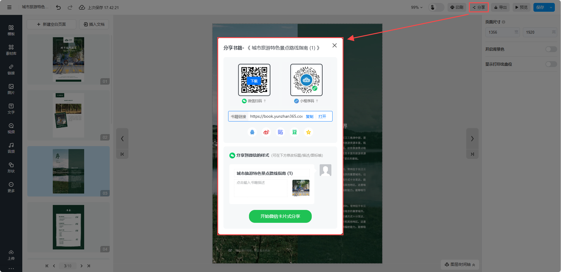 點(diǎn)擊【保存】按鈕,保存后的電子書,可以點(diǎn)擊【分享】發(fā)送到朋友圈或通過(guò)鏈接/二維碼分享到微信/QQ好友。