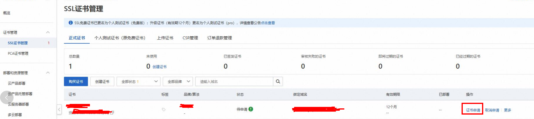 驗證成功以后。證書需要等待阿里云那邊審核,一般一小時內審核完成。