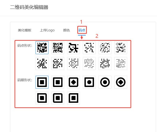 點(diǎn)擊【碼點(diǎn)】,下方設(shè)置碼點(diǎn)形狀和碼眼形狀。