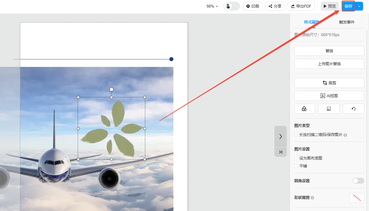 此功能可以對圖片素材進行摳圖處理,只保留圖片中想要的部分顯示在電子書頁面上。