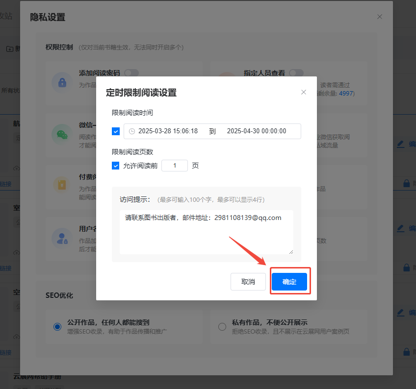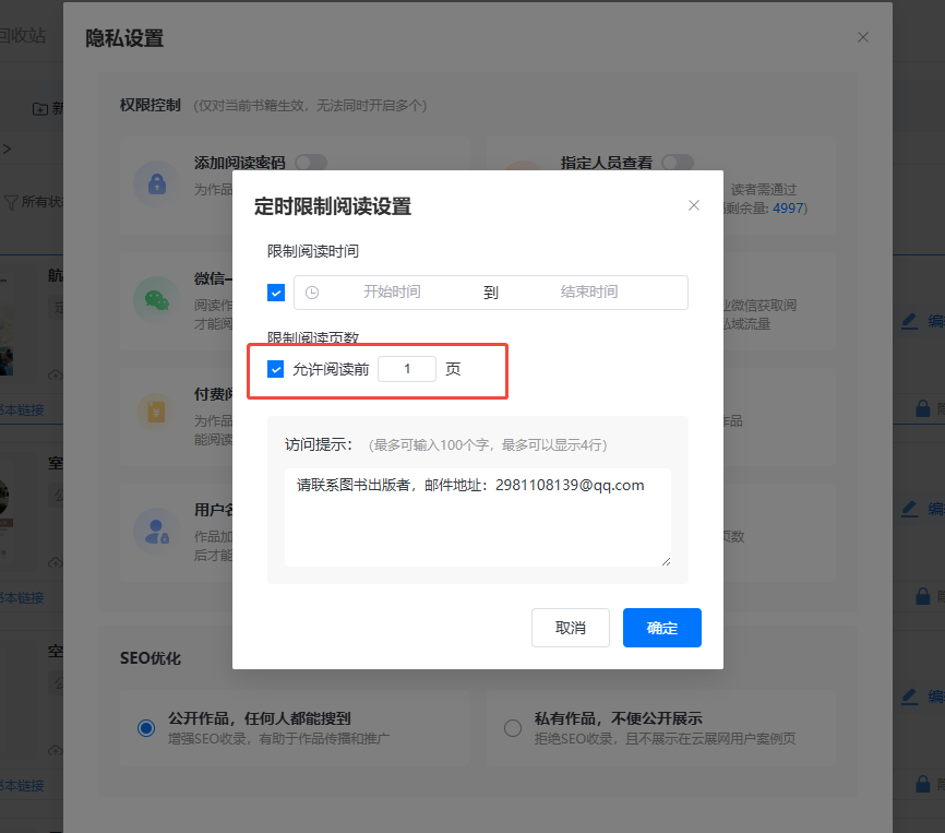 如果想要非限定的時(shí)間段內(nèi)讀者可以試看,可以設(shè)置允許閱讀前幾頁。