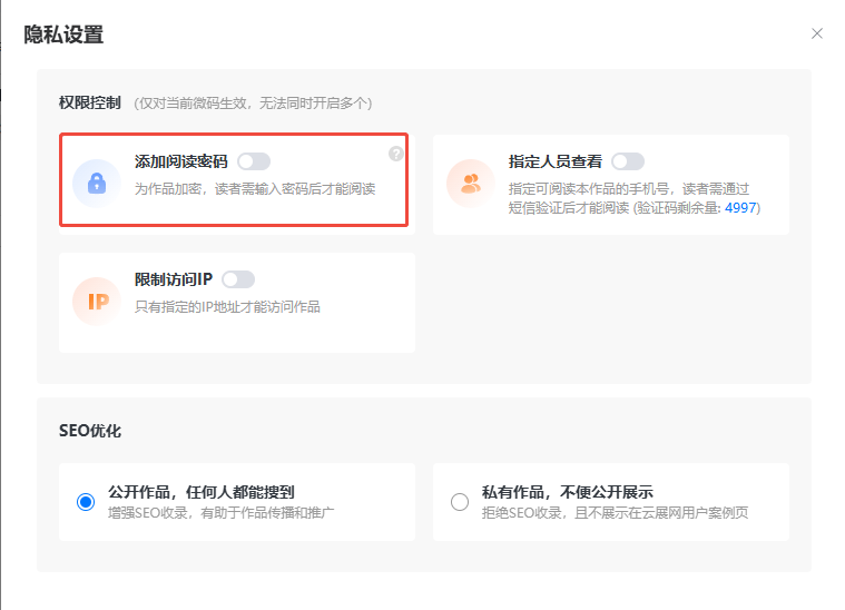 此功能可以給制作的微碼設(shè)置一個(gè)或多個(gè)密碼,這樣讀者需要輸入設(shè)置的密碼才可以閱讀該微碼,添加密碼可以有效保護(hù)微碼內(nèi)容的安全性和隱私。