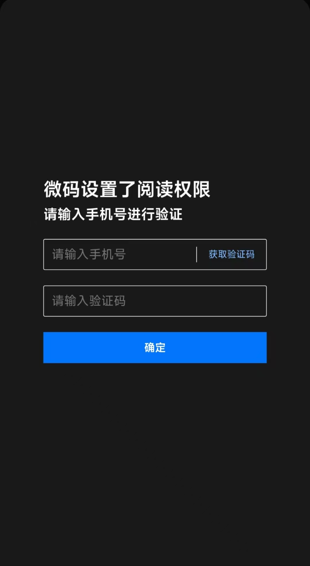 此功能可以后臺給微碼設置指定的手機號,然后讀者打開微碼后,需要通過指定的手機號收發驗證碼驗證后才可以觀看。
