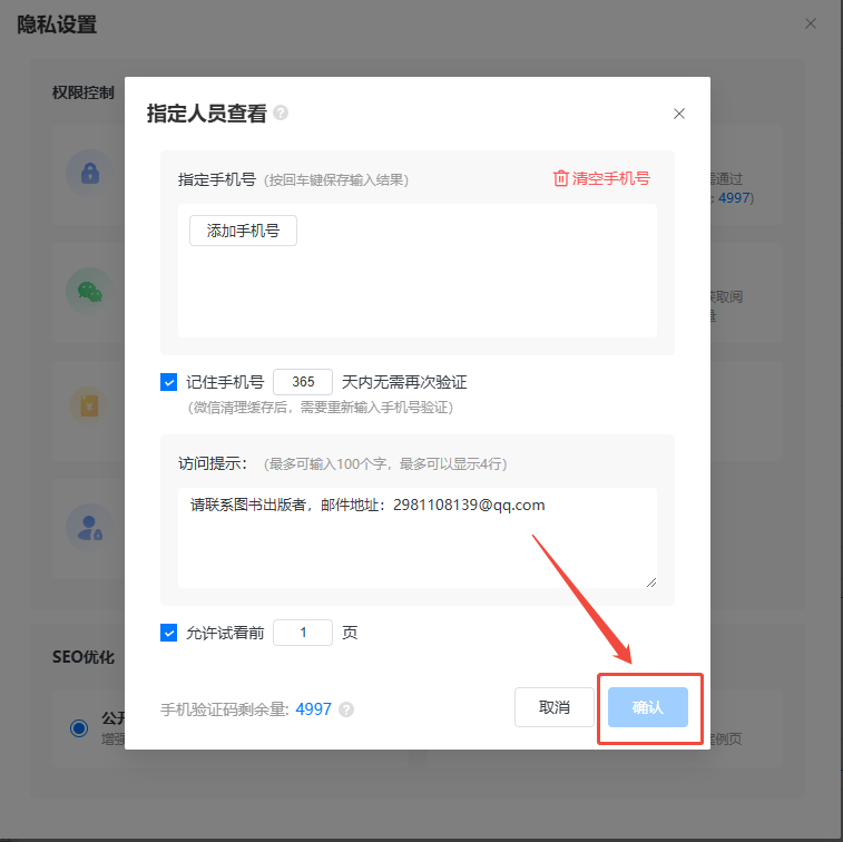 如果你想允許讀者看幾頁之后再要求輸入手機號驗證,可設置一下允許查看幾頁。