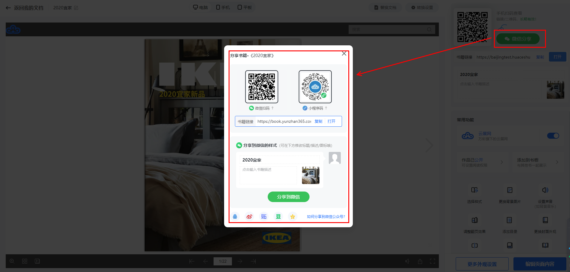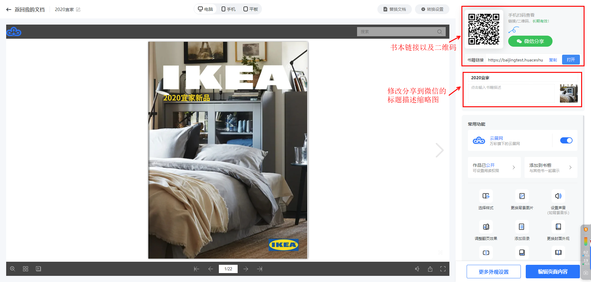 上傳成功以后生成的書本鏈接以及二維碼可以用于網站,微信(包含朋友圈,好友,微信群,公眾號),QQ郵箱等發布。