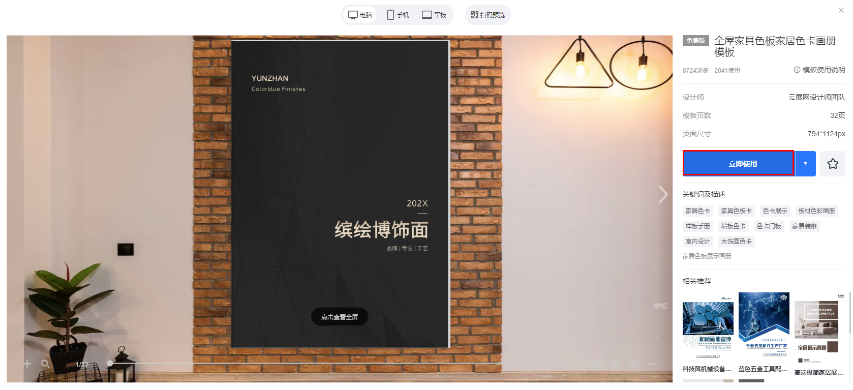 單擊 點(diǎn)中 心儀模板,點(diǎn)擊【立即使用】。