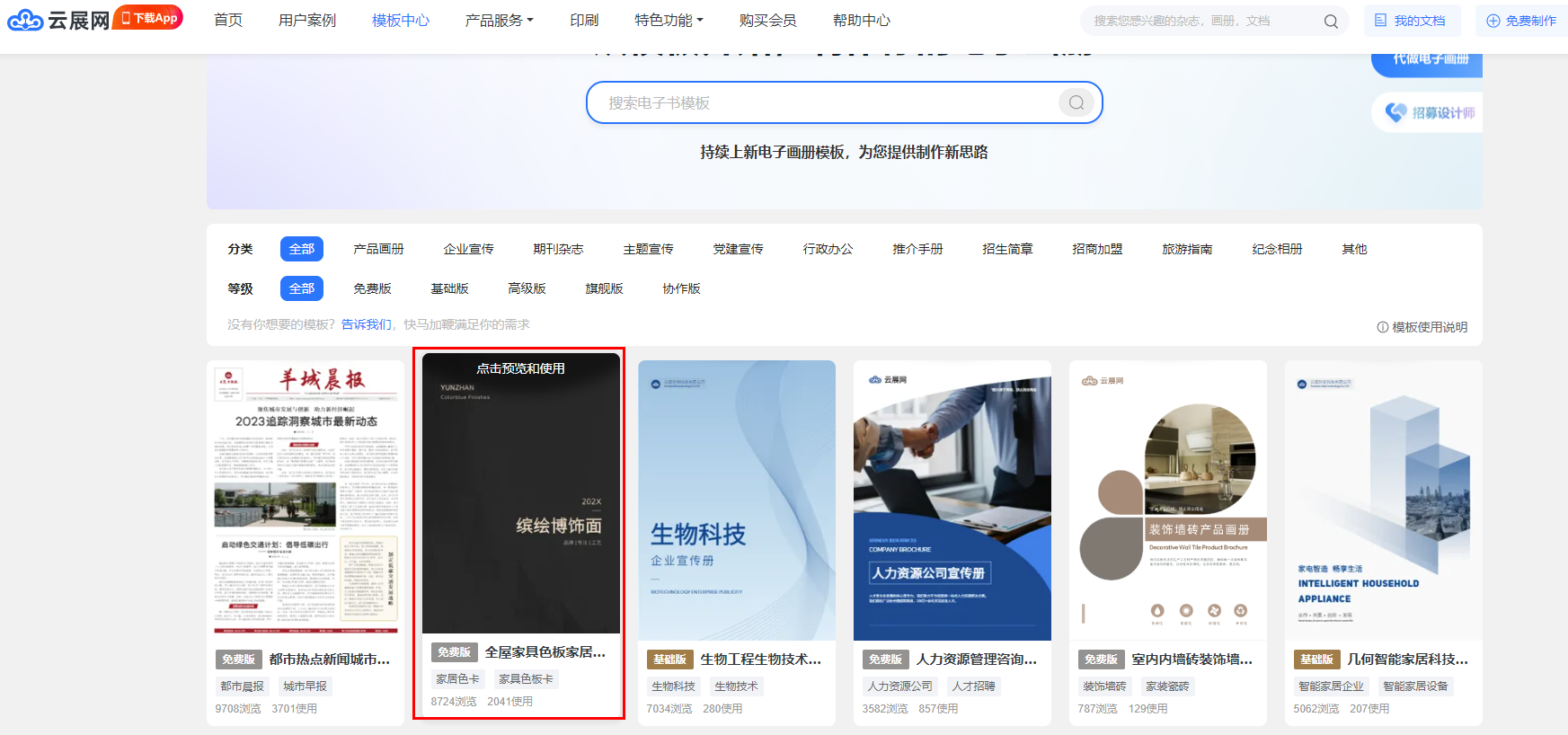 如果您沒有設(shè)計(jì)好的文檔,要如何快速做好一本電子畫冊(cè)呢?選擇云展網(wǎng)模板中心心儀模板,替換文字圖片,便可最快,最省心的做好一本電子畫冊(cè)了。