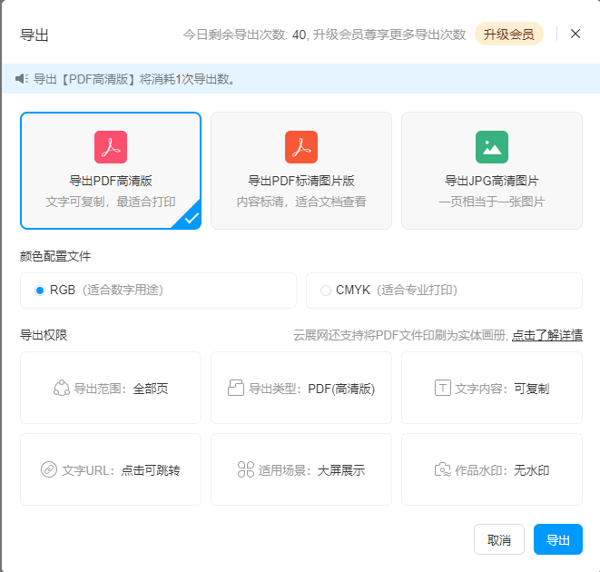 點(diǎn)擊【導(dǎo)出】,可以導(dǎo)出PDF或者圖片文件用于打印。
