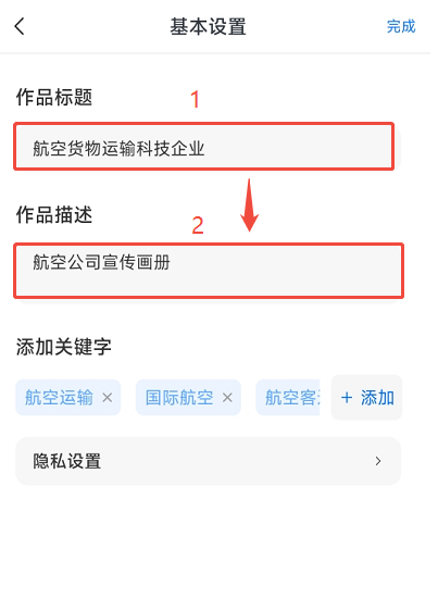 (2)分別輸入【作品標(biāo)題】和【作品描述】后即可自動(dòng)保存。