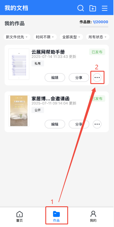 (1)點(diǎn)擊【作品】,然后點(diǎn)擊對(duì)應(yīng)電子書右邊的三個(gè)點(diǎn),最后點(diǎn)擊【微信小圖標(biāo)】。