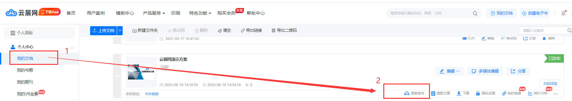 在【我的文檔】頁(yè)面,點(diǎn)擊【語(yǔ)音讀書】進(jìn)入