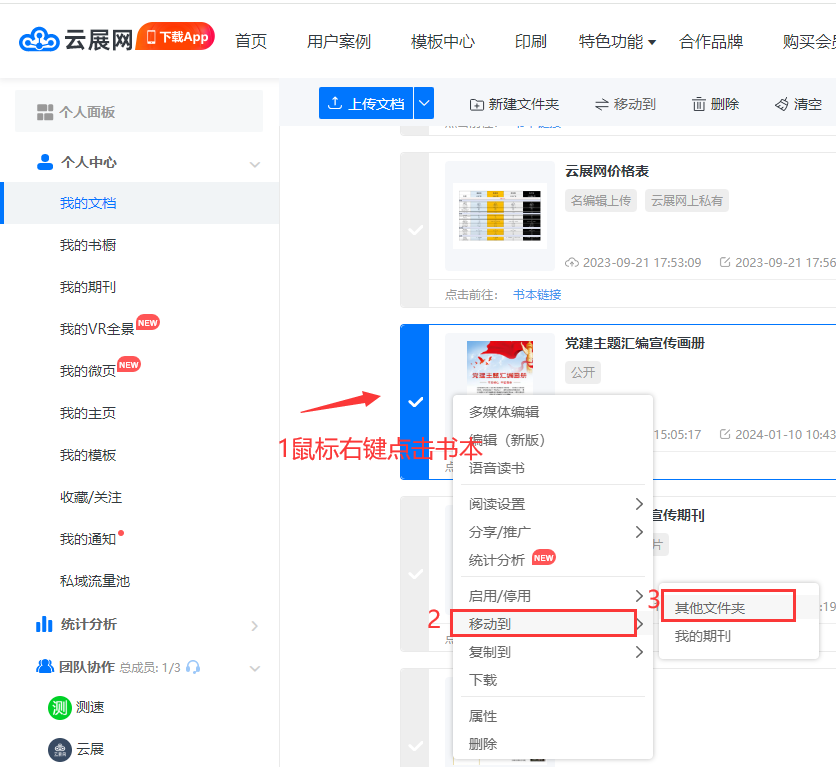 鼠標右鍵點擊書本–選擇【移動到】—【其他文件】–選中對應(yīng)的文件夾