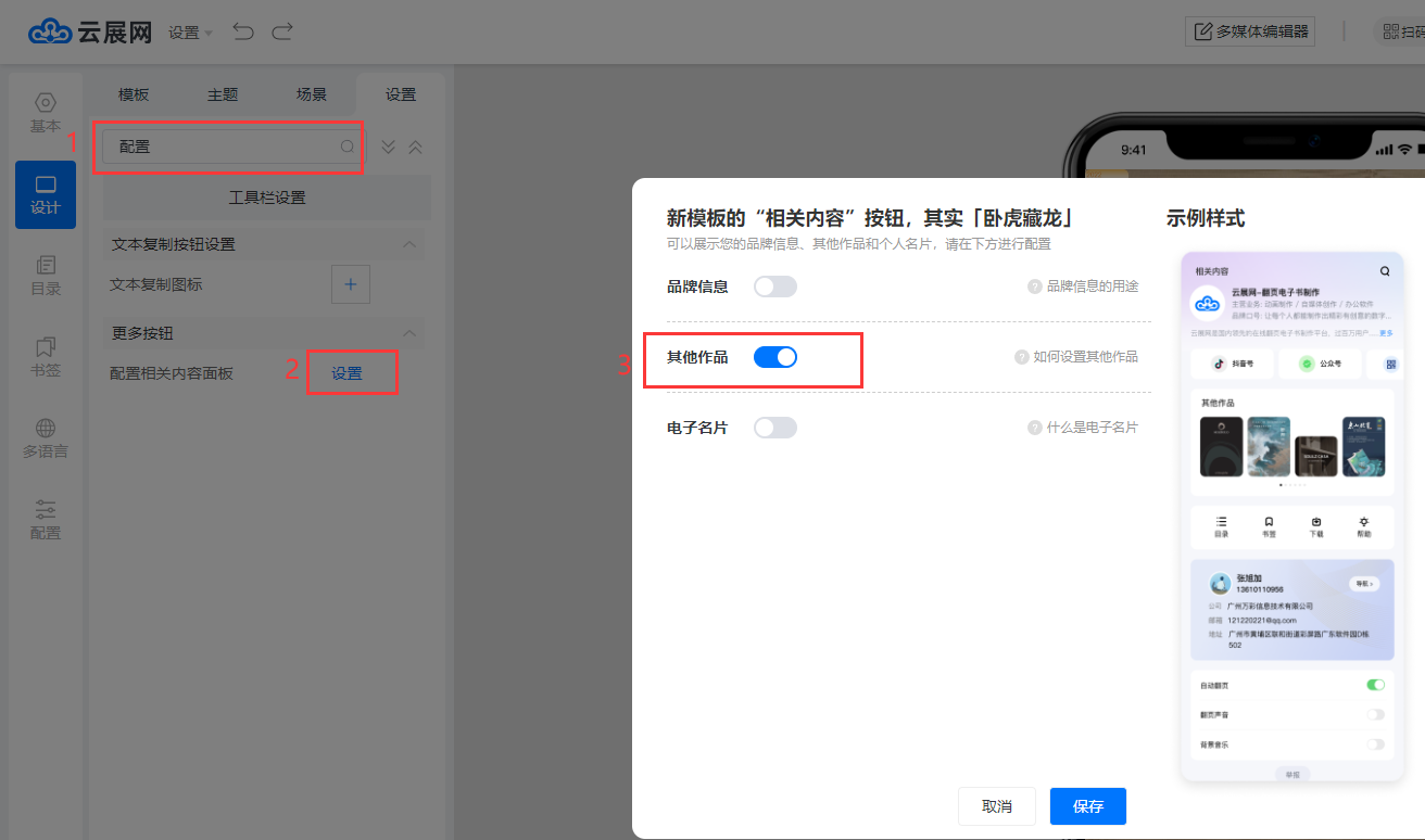 點擊【編輯】–在搜索欄輸入 “ 配置 ” 關(guān)鍵字查找,設(shè)置【配置相關(guān)內(nèi)容面板】–勾選【其他作品】