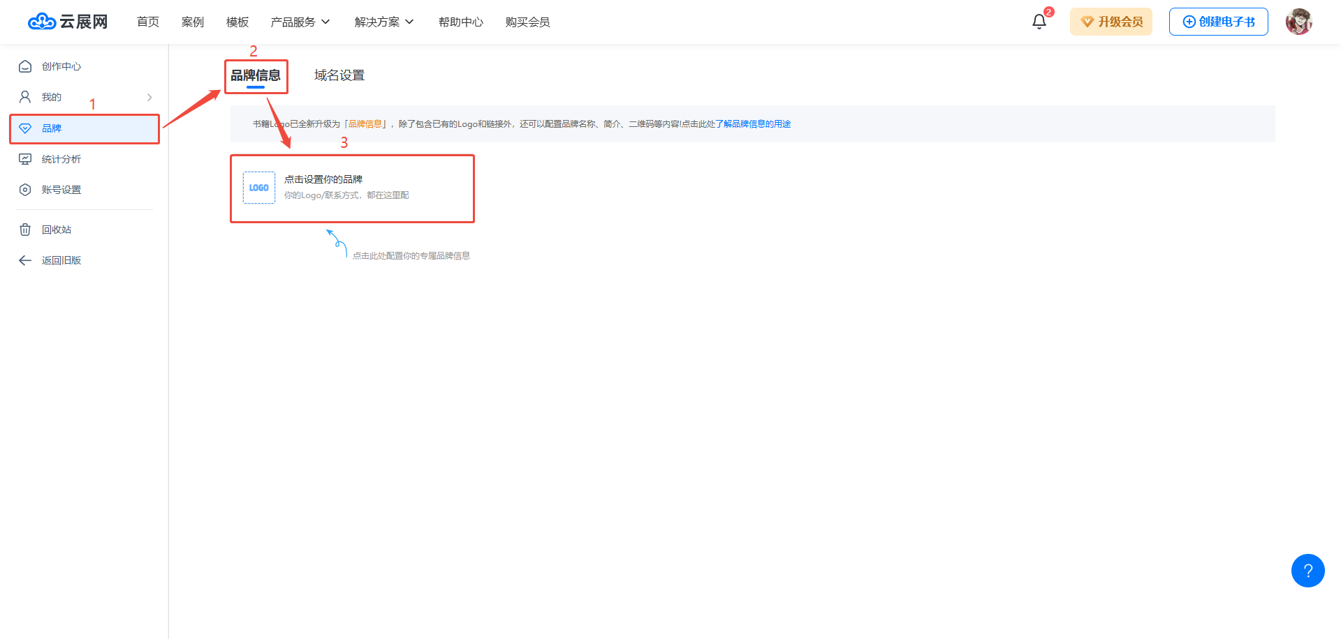 點擊【品牌】,然后點擊【品牌設置】,創建品牌信息。