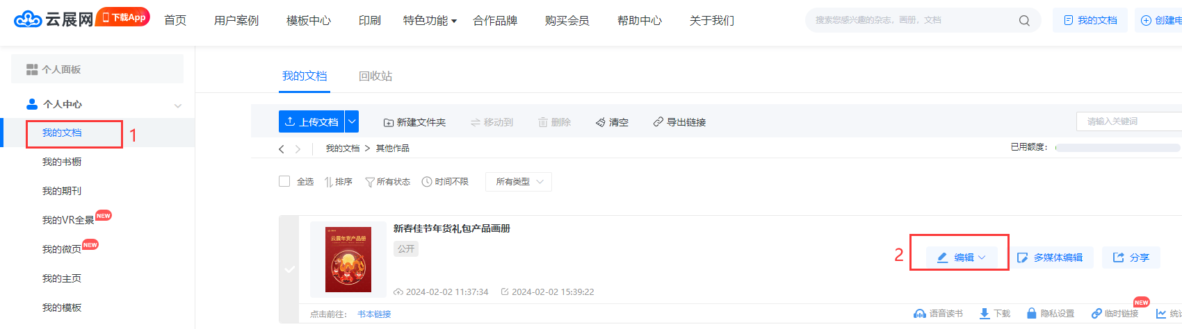 在【我的文檔】頁(yè)面,點(diǎn)擊【編輯】進(jìn)入編輯頁(yè)面
