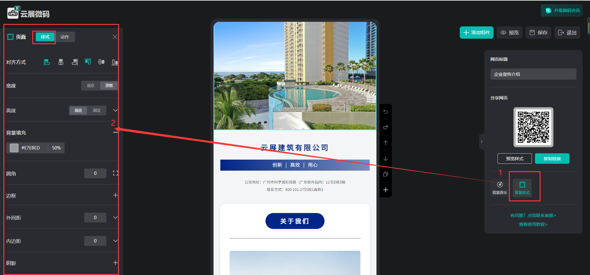 背景樣式設(shè)置指的是調(diào)整微碼頁面布局,使頁面更加美觀,可以設(shè)置對齊方式、背景補充、內(nèi)外邊距等